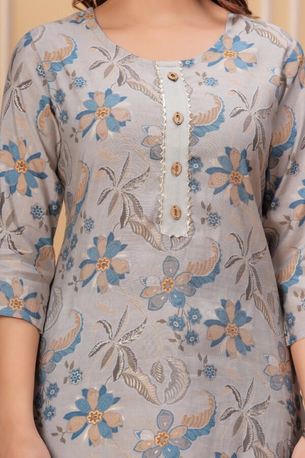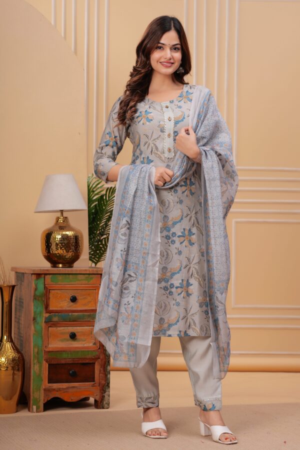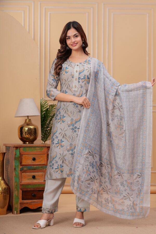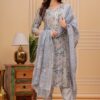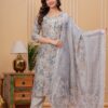 Grey Floral Kurti Set with Dupatta