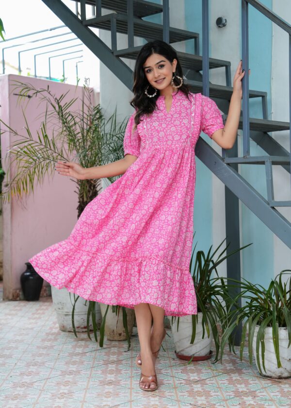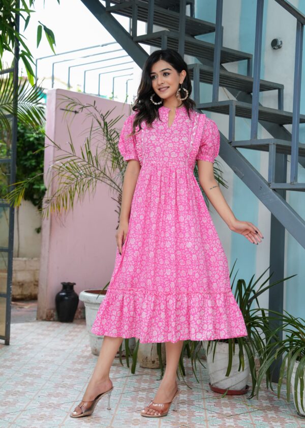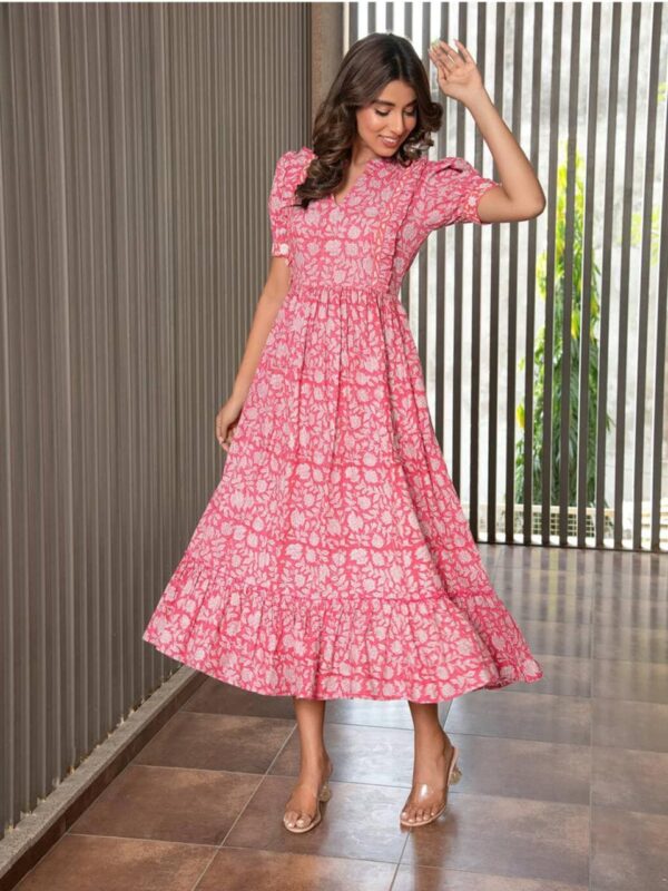 Be the first to review “Pink Floral Puffed Sleeves Dress”