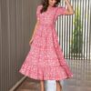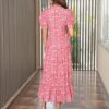 Pink Floral Puffed Sleeves Dress